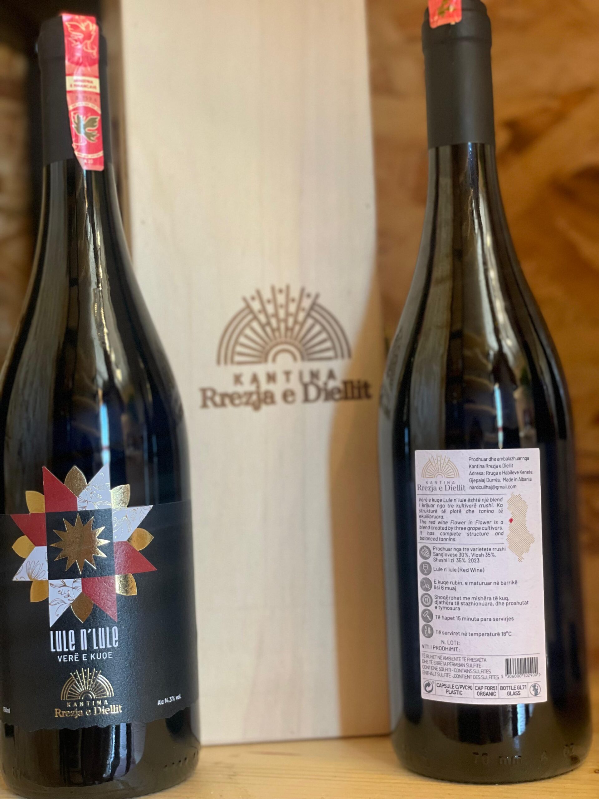 LULE N’ LULE është një përzierje e menduar me kujdes, që bashkon varietete të ndryshme rrushi për të krijuar harmoni dhe kompleksitet. Çdo element i kësaj vere kontribuon në një profil aromatik të pasur dhe të balancuar. Procesi i prodhimit synon të ruajë karakterin individual të çdo varieteti, duke i kombinuar ato në një verë me identitet të veçantë. Aroma është e thellë, shija e butë dhe përfundimi i gjatë, duke krijuar një ndjesi të ngrohtë dhe elegante. LULE N’ LULE është një verë që flet për kreativitetin dhe eksperimentimin e kujdesshëm, pa humbur lidhjen me traditën.